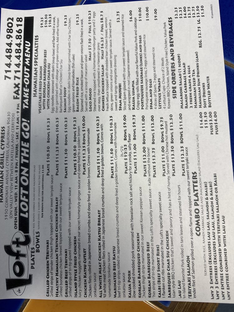 Welcome to The Loft Hawaiian Restaurant, a culinary gem nestled in Cypress, CA. Here, the rich flavors of Hawaii come alive through a delightful menu that showcases a blend of traditional and modern influences.